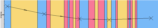 Штриховки позволяют легко проанализировать участки профиля – прямые, круговые кривые и переходные кривые, комбинации круговых и переходных кривых.