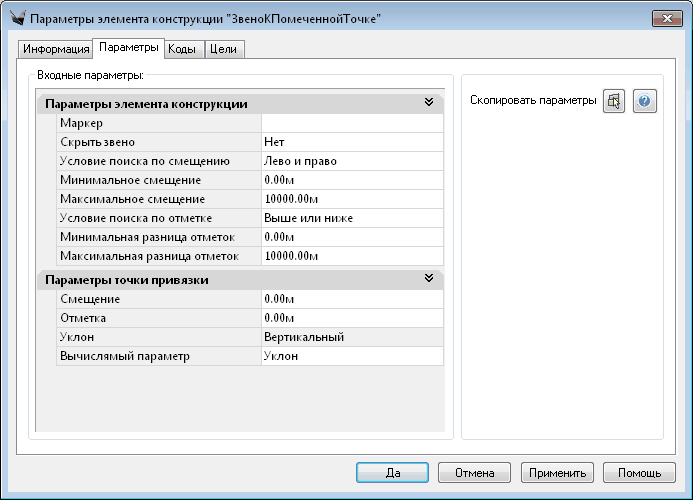 Элемент конструкции формирует простое звено от точки вставки до помеченной точки с указанным именем.